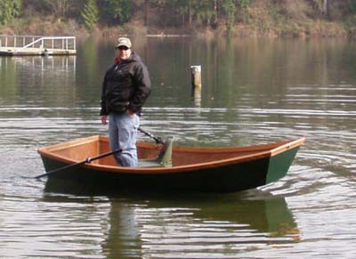 The boat sits proud in the water and is very easy to row. A 2hp Honda (long shaft) should be more than adequate to power the boat if you have far to travel, and it's 28 pounds will never be felt. After rowing the boat, I really like the center seat concept and all the open space around it. It's an idea that I will pursue further.