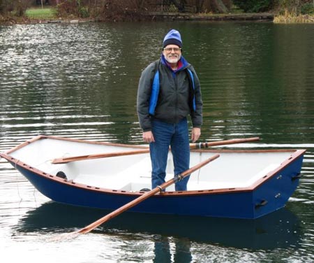 I have gone to using the "enclosed pyramid" (with watertight hatches) style of seating in all my designs for safety reasons. After reading, and looking at the photos of a story in Duckworks Magazine dealing with the deep water self rescue of a brand new "traditional" small boat design (they couldn't); I will no longer include drawings or instructions for old style wooden plank seats. Your safety, and that of your family members is more important to me, than any negative comments about my hull interiors. This hull as designed, has around 4+ cubic feet of extra positive flotation build into the enclosed pyramid seating. That's over 240 pounds of extra support, along with the wood in the hull. The two handle/steps on the stern are there to help you or a loved one, get back in the boat again if needed. Always carry and wear, a life jacket adequately sized for you and your guests, and all in good condition.