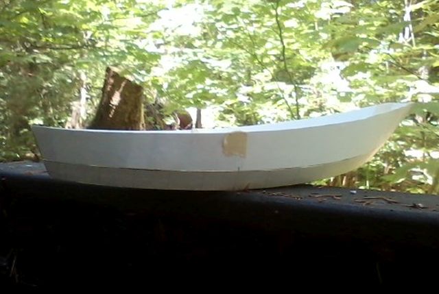 I’ve shown in the drawings two type of interior for the hull and if you download the free “study plan set” you will see what I’m talking about. Then again, most people have and idea of what they want in a drift boat and can build the interior they want. Just make sure the hull still balances at the “beam point” of the hull as the model did in the tank testing. I was surprised at how high in the water it floated; even with three scale people in the hull. “Float like a butterfly….”