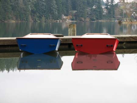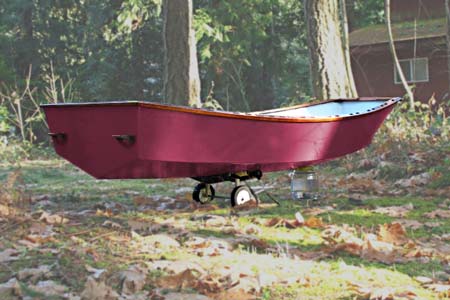 I have gone to using the "enclosed pyramid" (with watertight hatches) style of seating in all my designs for safety reasons. After reading a story with photos, dealing with the deep water self rescue of a brand new "traditional open interior" small boat design, and they couldn't empty out the water; I will no longer include drawings or instructions for old style wooden plank seat interiors. Your safety, and that of your family members is more important to me, than any negative comments about my non-traditional hull interiors. This hull as designed, has around 5+ cubic feet of extra positive flotation build into the enclosed pyramid seating. That's over 300 pounds of extra support, along with the wood in the hull; and you will have less water to bail out. The two handles or steps on the stern are there to help you or a loved one, get back in the boat again if needed. Always carry and wear, a life jacket adequately sized for you and your guests, and be sure they are in good condition at all times.