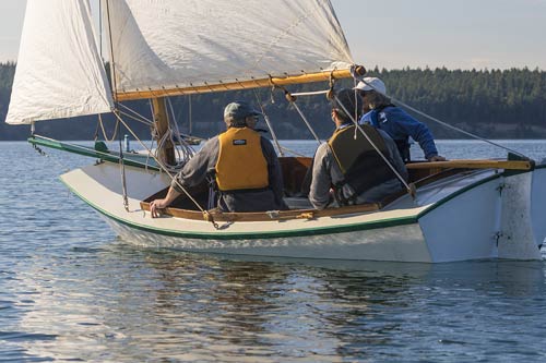 SAN FRANCISCO PELICAN 12’ is a unique centerboarder, combining the lines of the famous Banks fishing dory with the Oriental sampan bow, and versatile Standing Lug rig carrying 105 square feet of sail.