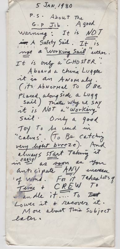 Here are some hand written notes from Captain Short to an early builder of a Great Pelican