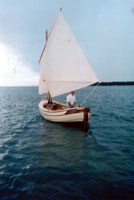 Building the boat would be done with volunteer labor supervised by a skilled boatbuilder, and the materials should be easily obtained and worked with common tools and skills. She should carry six trainees plus an instructor, have a job for all when under sail or rowing, but be able to be single-handed when being ferried out to a campsite or returned.