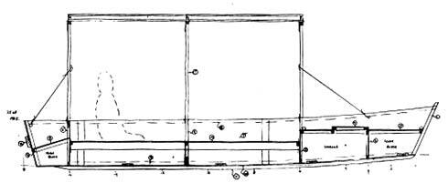 This sort of shape has some advantages beyond the simple setup. Because the hull is constant aft of the middle a fellow could lengthen, shorten very easily. You can't make it wider or narrower easily. In addition, the bench seats are I think pretty much nonstructural. You could omit them leaving the center open except for the center frame. Sit on a folding chair like I do with my AF4. Unfortunately I do think the center frame is needed to keep flexing of the bottom under control. But there are other ways around that, for example using a deeper center shoe. The bottom, as shown, is a copy of what I use on my AF4 now with satisfaction. 1/2" plywood with a 2x4 center shoe full length. Max Wawrzyniak showed me the way on this after my first AF4 bottom proved flexible beyond enjoyment. It is a very simple build indeed.