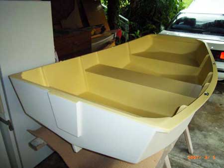 - External gunwales so that water, sand, and mud can be easily washed from the boat when she is rolled onto her side. This system dramatically reduces the labour required to install the gunwales;