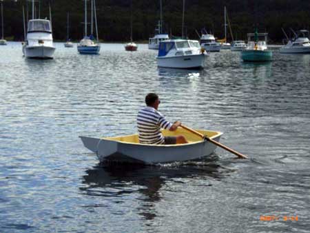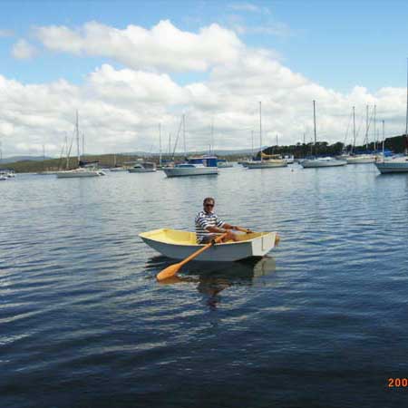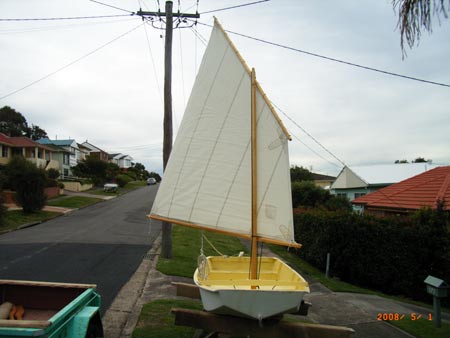 Thought you might be interested in a few pics I took (very belatedly I must admit) of the sailing rig I added to the prototype Alby 8' dinghy I made to Ross Lillistone's plans.