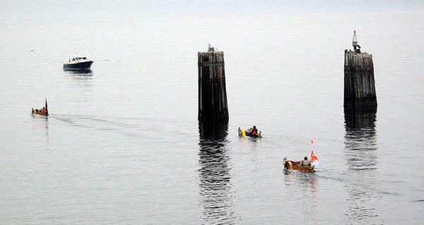 But wait, what is this? A canoe speeding down the bike lane, descending the boat launch and entering the water with the owner never getting out of the canoe, or even slowing down? A small splash and he canoes across the bay and out of sight.