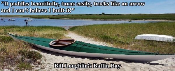This boat is a little longer than the Disko Bay kayak, though their cockpits are essentially the same size. The stems are considerably shorter than the DB's, so that - combined with her greater length - gives the Baffin Bay greater carrying capacity and a bit more stability. Lighter weight paddlers (under 140lbs/64kg) found the prototype to weathercock rather more than necessary, but the prototype was built shorter than the original. The current version is back to the original size, with the paddler's weight in the correct position.