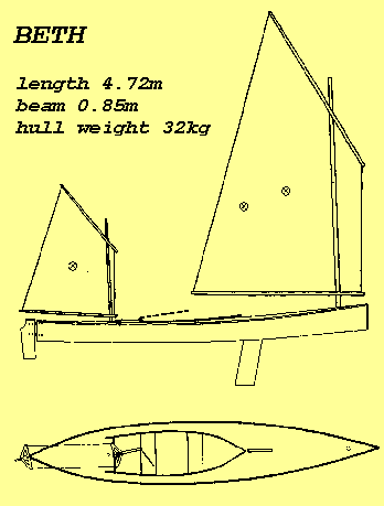 I drew Beth with a real intention to build her for myself - my first "real design" after years of drawing boats on every spare piece of paper that came my way. There were lots of different ideas that I wanted to try out in a light, cartoppable sailboat: