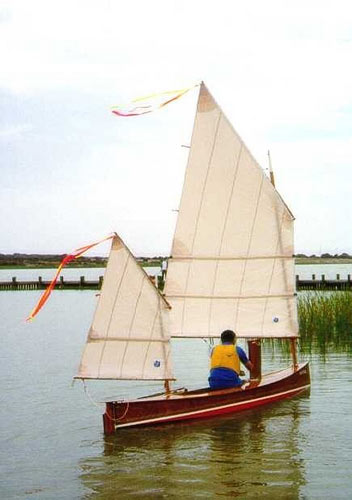 * Old fashioned sails with modern technology - I'd been brought up on modern high performance dinghies. Old fashioned rigs - gaff lug and sprit - are pleasant to the eye, but in my experience they sailed like dogs. Yawl rig also had a doggy reputation; "one mast is fast" had been drummed into me. But what if a traditional rig was set up using modern sail controls and fitted to a hull with high speed potential?