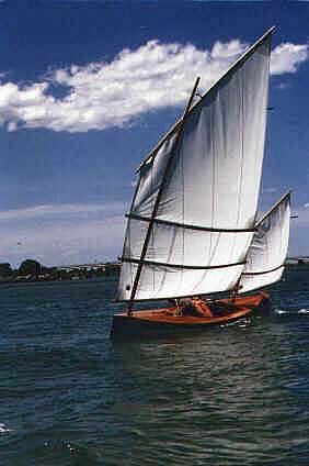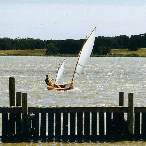 * I had been very impressed with American designer Phil Bolger's "Box Boats", with their flat bottoms and hull sides set at 90 degrees. A hull shape of this sort would certainly cut down my labour - but would the boat sail well and look good? There was one way to find out!