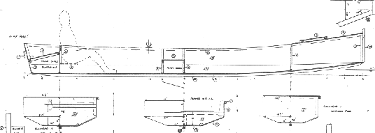 Bruce was looking for a large powered canoe but couldn't find one for sale. He said they still make them by hand in Maine but he was in California and you couldn't expect to buy one anyway unless you showed up with money in hand on the day the builder happened to finish one. So he wondered if the row/sail skiff Woobo couldn't be redone as a long lean powerboat. It's not the first time that has been mentioned. Ray Laviolette had the first plumb bow Roar, predecessor to Woobo, built up in Michigan for rowing and both he and his builder thought the shape could be modified for low power.