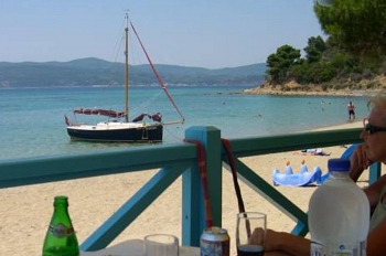 She has a long and shallow keel moulded in, which runs from the leading edge of the centre plate through to the outboard engine well. A rudder horn is bolted to the heel of the keel to give protection to the semi-balanced spade rudder, which is hung off the transom on pintles.
