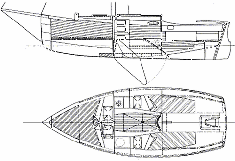 Aft she is quite full on plan, with straight buttocks. This powerful stern gives her good reaching speed and the volume distribution to carry reasonable crew loads in the cockpit.