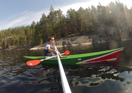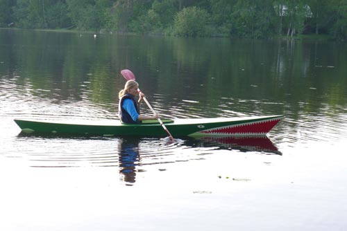 The idea of an easily and quickly build kayak has fascinated me for a while. A boat which can be made with minimal building effort - so, if I crash it onto rocks etc, I don´t have to loose any sleep. Still it should be good to paddle both: on shallow rivers and on lakes. Crocodude is designed for that purpose.