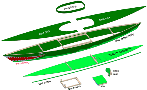 Also download the 3d pdf file. The 3d model works only in Adobe Acrobat reader! (any other pdf reader would not be able to rotate the boat.) If you feel unsure how some parts are assembled, you can open the model - hide parts and find the part you are looking for.