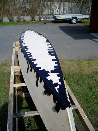 Assembly is fast: the sides are screwed together with couple of frames. Then the bottom is taped to the sides with duct tape while the inside seams are glassed.