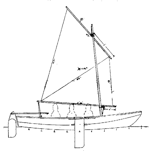 Although sailing was not part of the original idea, it was clear that this shape of hull will sail quite well if it were a pure sailing boat. I gave it a simple and cheap and effective balanced lug right with my usual pivoting leeboard. How will the motor well affect sailing? It isn't going to help. You could build it as a sailer only and omit the well. The thing is that if I don't draw the sail rig I will forever be answering requests about sailing it. So there you are - the sail rig.