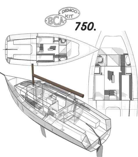 A 7.50 m length is, for a small cabin cruiser, a dimension which offers a great advantage and a few inconveniences. The advantage is that it represents the limit-dimension within which it is possible to build a trailable cabin cruiser, without straining its characteristics too much. Beyond this length it is difficult to design a boat whose beam and weight fall within the limits of trailability. On the other hand the inconvenient aspect is that the boat lacks internal space for comfort to be a real cruise boat, that is, standing height in the saloon, a suitable separate head and kitchen. It would be necessary only to have an extra meter and all these could be easily fitted in.