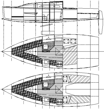 The result is a boat that is 12.5% shorter and lighter than the Didi 26 and with the rig reduced proportionately. This should give a cost saving of about 15%. It will also be easier to launch and retrieve because of reduced weight.