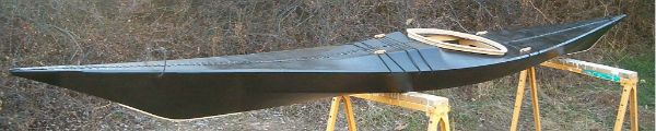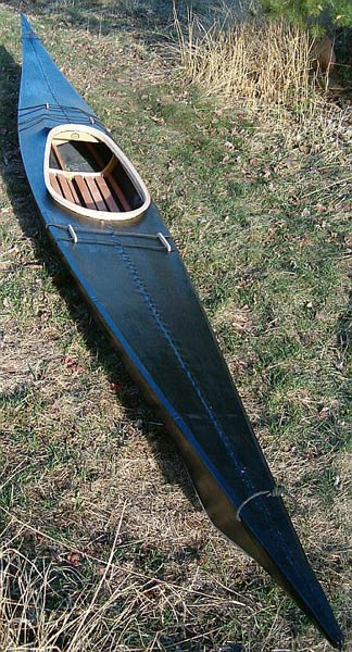 She's been modified for non-traditional construction. Instead of dozens of steam bent ribs, laboriously mortised and pegged into the gunwales, there are just a few marine plywood frames. The stems, too, are ply. The result is a boat that is vastly quicker and easier to construct, but looks and performs exactly the same as the original. Other modifications include a standard sized cockpit (18"x30") and a slightly raised masik for more leg room. Neither of these mods influence the handling, at all, and you can certainly build yours with a traditional sized cockpit coaming and less legroom, if you prefer.