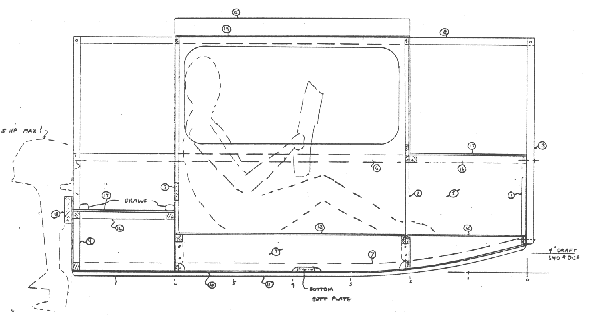 Bill McKeough built the prototype in Oklahoma but he narrowed the boat a foot so it would fit on his utility trailer (I would have done the same if I had the trailer already on hand) but he said the extra foot width would have been nice. I thought his finished boat was perfectly in tune with what the designer had in mind, right down to the mini tire fenders. Note that he added oarports, something not shown on the blueprints but not a bad idea.