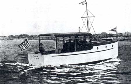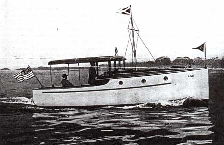 The care and operation of the boat requires a minimum of effort. Everything has been designed to eliminate the unnecessary and retain the essential. In construction and material, as shown by the specifications, she is the equal of her larger and more expensive sisters. Seaworthy quallties are assured by generous beam and proper