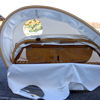 When you arrive at your chosen camp site it takes less than five minutes to put the Foldavan in 'Camping Mode', a full metre wide and over a metre of headroom. The thick mattress is in two pieces and ensures extreme comfort and jealous looks from your neighbours. You can camp in places where you wouldn't be able to pitch a tent. You don't have to worry about stones poking you in the back, rough or sloping terrain, insects, damp ground, sudden rain etc. If you would like a slightly wider version you can even build a Foldavan to be a wopping 1.2 metres wide.