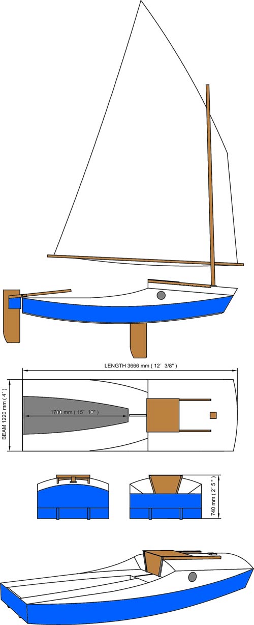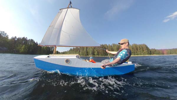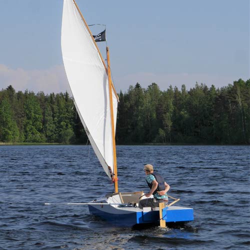 The sail is similar to OZ Racer (lug rig ), Ocean Explorer and OZ Goose, so if you have built one of those boats you can use rig and foils also on Goose Explorer. Ready-made sail can be purchased HERE.