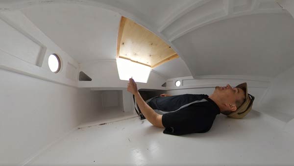 The small cabin provides a cosy space for two or plenty of space for one sailor. The cockpit is really big so this boat is surprisingly spacey for its size.