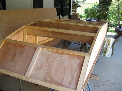 Building is instant style with all components prefabricated out on the flat. The sides are then set up with the bulkheads and transom between.