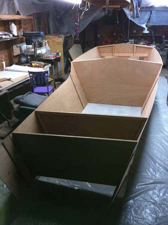 It is all simple nail and glue construction needing nine sheets of 1/4" plywood and four sheets of 1/2" plywood.