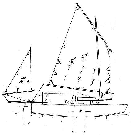 Although Hapscut was designed for a long cruise, it clearly has the makings of a good daysail family boat as long as you stay out of rough water. It has the room, shelter, and ease of use that make for a good family boat. Finally, although designed to take two men on a long trip, it clearly is not too big or complicated for single handing.
