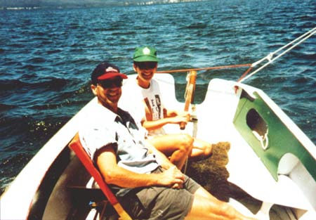 Other considerations were that I wanted to be able to tent her and sleep two on board, she could not be too big for wife Jan or 12 year old daughter Sarina to sail single handed but she still had to accommodate two adults, a twelve and a three in enough comfort to prevent friction between the junior members of the crew, and still be seaworthy enough to cope with my coastal cruising ambitions. As a cruiser she needed plenty of storage space, she needed to be dry and comfortable and also had to be suited to my three year old sons need to scramble around.
