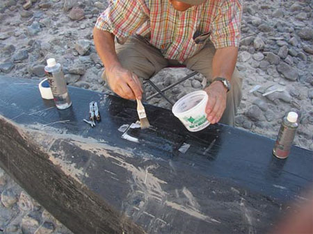 We pulled the boat up on the gravel bar we camped on that night and did a field repair. Nothing to it.
