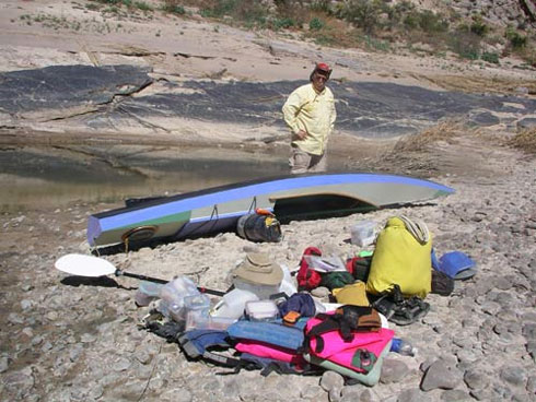 Can you believe all this gear came out of that boat? Skip surveys all the camping stuff that came out of the bowels of my Imresboat so we could pull it onto the sandbar for field repairs in Mariscal Canyon.