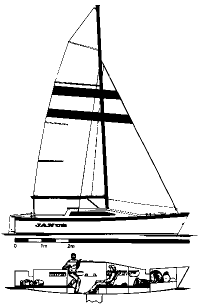 Don't be deceived by Janus' simple dory shaped hulls (which make it a very easy boat to build). It has a lot of internal room for its length and a surprisingly good performance.