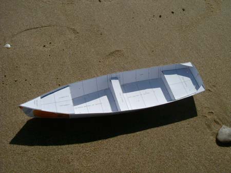 My approach has been to make the forward lines fairly straight, while making those aft more curvy in order to place the centre of bouyancy in the conventional place, a little aft of the half way mark. This approach seems to have worked well with another design of mine, the Light Trow, which is another light-displacement flattie design of about this size and is reported to row very well.