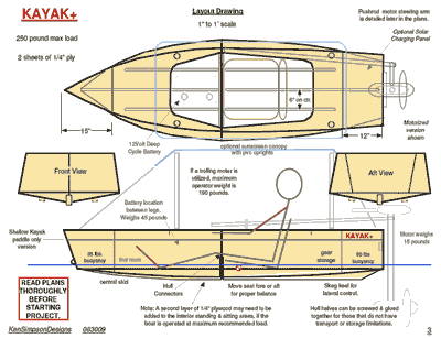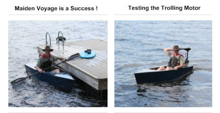 I think KAYAK+ will be a popular design, as the basic hull build cost is only around $110, with the completed boat less than $175. Of course this does not include the motor, and battery for the electric version. In conclusion, the plans are 28 pages with plenty of descriptive photos, including some of the boat in the water.