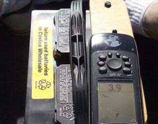 KAYAK+ was fun to build, and if today's maiden voyage was any indicator, it will be fun on the water too. I spent about 3 hours testing all aspects of the design. For a small boat it is quite stable, due to the wide base I suspect. It registered 4.2 mph on the Duckworks GPS at full speed. Not bad. I was told by those watching that it sits evenly in the water. Under power the motor, a 36 pound thrust electric, tended to lift the stern slightly at full speed. This was caused by the motor not sitting perpendicular to the water. I have already corrected this with a wood shim on the transom motor mount that realigns the motor shaft to vertical. Another item that needs addressing is the steering rod. I had to hold on to it at all times, otherwise the motor would tend to drift to one side or the other, causing the boat to turn unnecessarily. I will devise a temporary locking mechanism to hold the steering rod in position, until pressure is applied to turn. Other than these two items, everything went smoothly. Breaking through the wake of large power boats proved to be no problem. The pointed bow develops a small wake which disperses by the time it reaches the stern of the boat. The stern developed no discernable wake itself, proving the hull shape to be almost ideal for such a small craft.