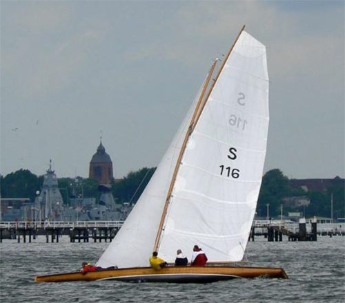 Many "experts" proclaim that a full batten rig is not possible on a Gunter main. This is not true as can be seen on the picture above. The Sonderklasse was founded 1899. The picture shows one of the last boats sailing on the Kieler Foerte. As is it clear it works also for big boats. The picture was made last year.