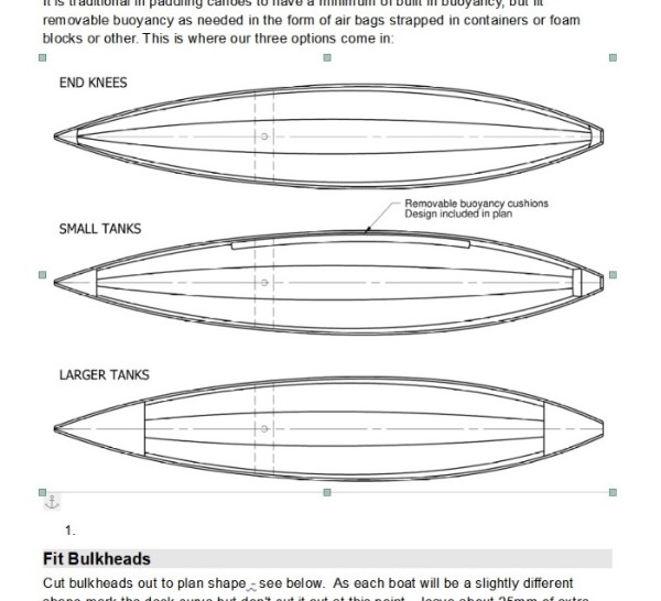 Optional buoyancy arrangement to reduce the water in the boat compared to canoes with end buoyancy or to builder’s configuration.
