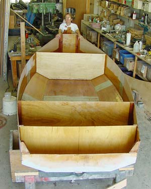 Ladybug uses taped seam construction. Six sheets of 1/4" plywood, one sheet of 3/8" plywood and two sheets of 1/2' plywood.