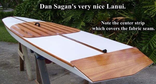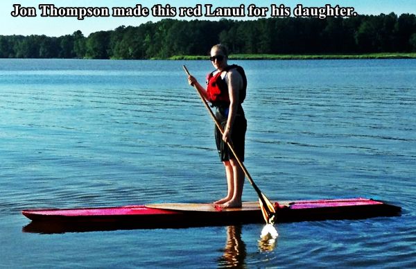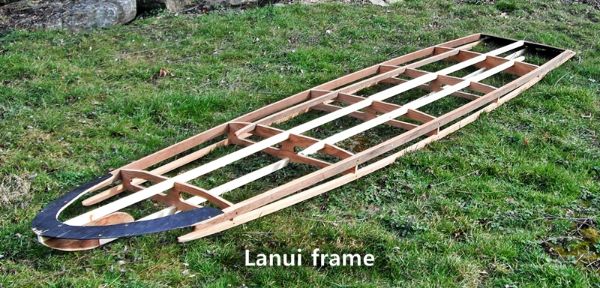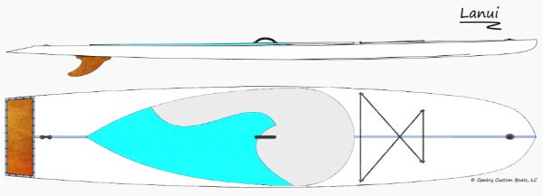 The Lanui paddleboard is a lightweight, inexpensive and quick and easy to build skin-on-frame stand up paddleboard (SUP). The Lanui is ready to go at the spur of a moment, easy to transport, fun, stable, and optimized for relaxed - or athletic - use by paddlers of all ages and abilities. She's great for poking up creeks, exploring back bays . . . or for getting in a fun, aerobic workout on the lake.