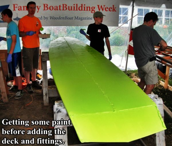 The bow is a modified garvey shape, providing good floatation and simplifying construction.