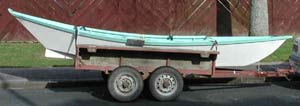 She rows extremely easily, better loaded than light because of the heavily rockered bottom. It cannot- be driven past hull speed even by a very strong person but is wonderful for eating up the miles at a moderate pace. I've covered 3 1/2 measured statute miles in an hour without busting my boiler and have travelled 25 miles in six hours with tidal assistance.