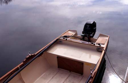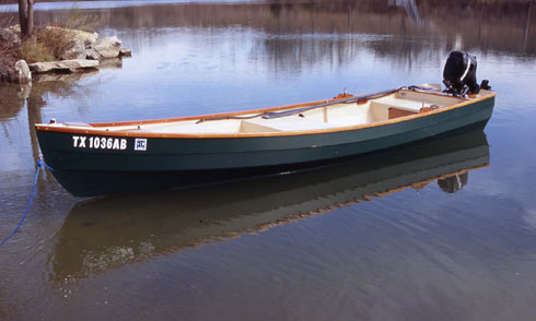 I have designed a 14'6", 42" beam, 80 pound, smaller version of Laker that is completely car toppable. It takes a 5HP outboard. The 5HP motor should give 12 to 15 mph easily. As this boat is just a scaled down version of Laker I every reason to believe it will give the same great performance.