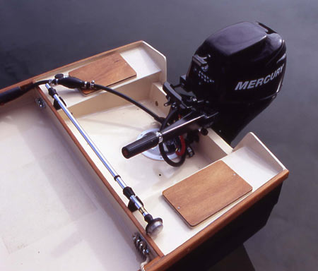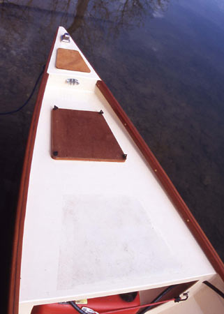 The two 7X10 plates next to the splash well allow access to small batteries for the running lights on the starboard side and on the other side for a fish finder. The sealed, small batteries help keep Laker's weight down to a minimum.