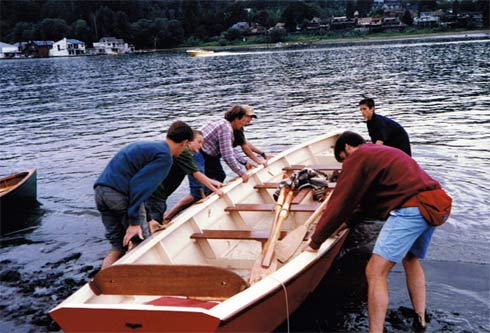 Organizations, such as yacht clubs, that have seen the demographics of their membership change with the passage of time, from mostly young hotshots to more settled family types, may -Find a non-stressful rowing program attractive. Retirement communities would seem to be a good field for this activity. Many have workshops where the boat might be built. The materials are readily available and relatively inexpensive. Boatbuilding skills are not required. The components are prefabricated before setup. Unlike conventional boatbuilding, nothing is attached to the floor and the assembly is a quick and easy procedure. The boats are light and easily transported. Perhaps some who are finding golf too frustrating, or tennis too hard on the knees, may find rowing a welcome change, and it is done in a sitting position. Those wishing to do something for society may foster youth involvement. Existing programs for getting young people involved in rowing show that all it takes is a little guidance plus the necessary watercraft.