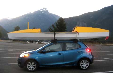 I used a HandiRack on a small rental car to bring her home, 200 miles over mountain passes. I'm now making a 110 square foot sail with better shape, full battens, and quick, easy reefing. It should make racing dinghy style sailing possible in a wide variety of wind speeds. Come spring I'll make a few other improvements, try some long over-due capsize-testing, and explore the Duck's limits in a range of conditions - hopefully in warmer waters so I won't mind an unintended swim.